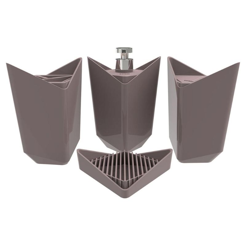 Casa e DecoraçãoUtilidades DomésticasAcessórios de BanheiroKit Prisma Cinza Tornado 4 Pç Porta Escova Algodão Sabonetes Conjunto para Banheiro Crippa