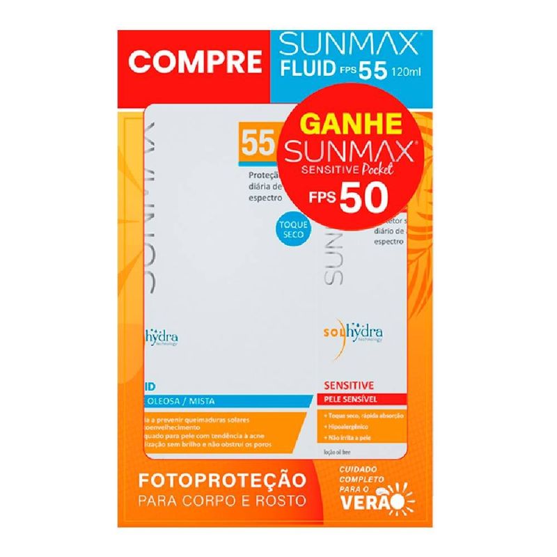 Beleza e SaúdeBelezaCuidados com a peleKit Protetor Solar Corporal Sunmax Fluid 120ml Fps55 Ganhe Proteor Solar Sensitive Fps50 25ml