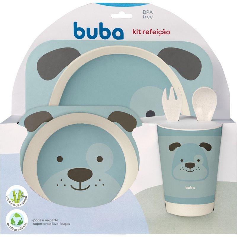 Beleza e SaúdeInfantil e GestanteInfantilKit Refeição Buba Bambu Cachorrinho Azul Com Prato Raso, Bowl, Copinho, Colher e Garfo