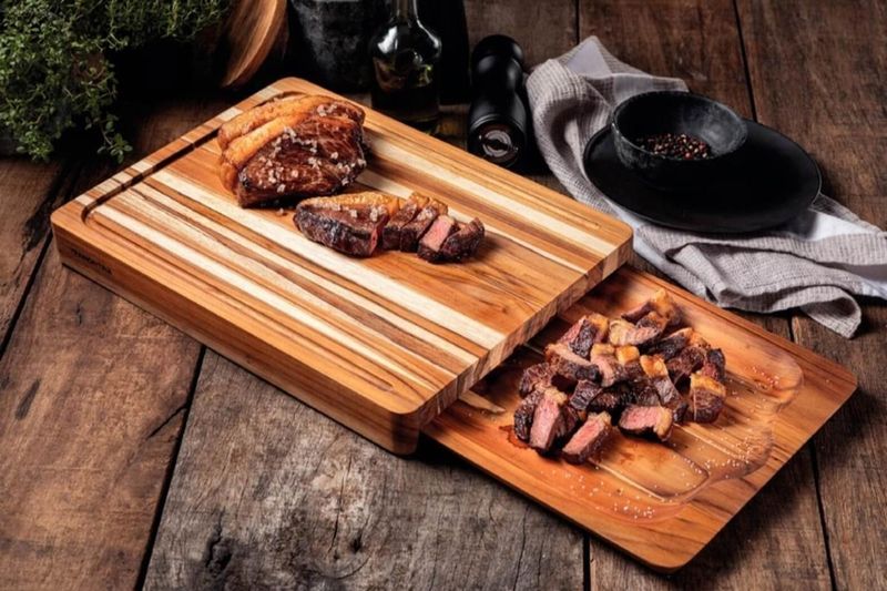 Kit Tábua e Bandeja Tramontina em Madeira Tec 40x30cm REF: 7908563705499