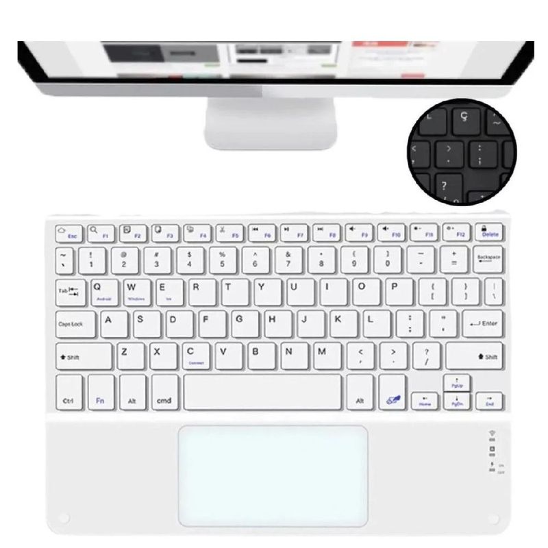 Kit Teclado e Mouse Touchpad para Tablet Bluetooth Recarregável Branco REF: 731787_Sicredi