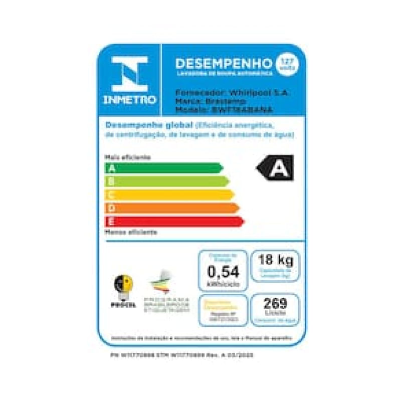 Lavadora de Roupas Brastemp BWF18AB com Ciclo Tira Manchas Advanced e Ciclo Antibolinha Branca - 18Kg REF: 755577_Sicredi