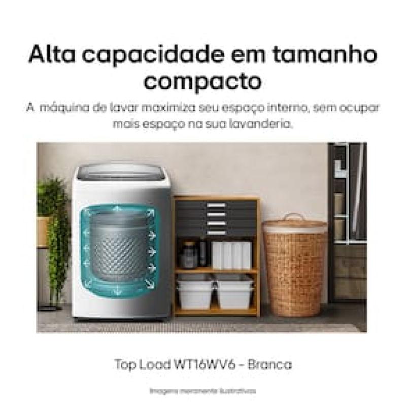 Lavadora de Roupas LG Automática WT16WV6 com Inteligência Artificial AIDD e Porta com Fechamento Suave 16kg - Branca REF: 724408_Sicredi