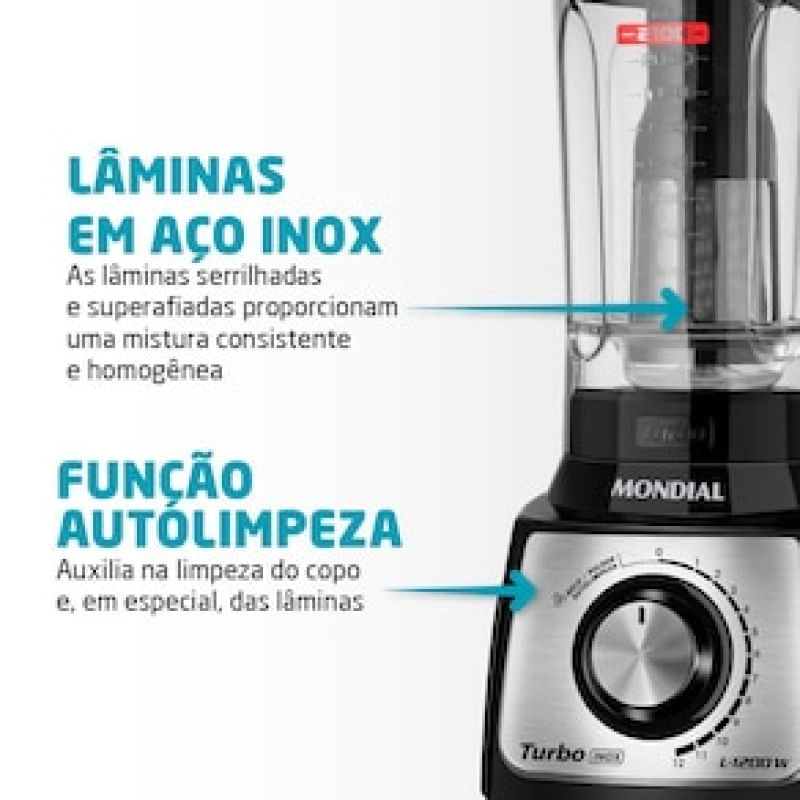 Liquidificador Mondial Turbo Inox L1200 BI Preto/Inox 1200W com 12 Velocidades REF: 155468_Sicredi