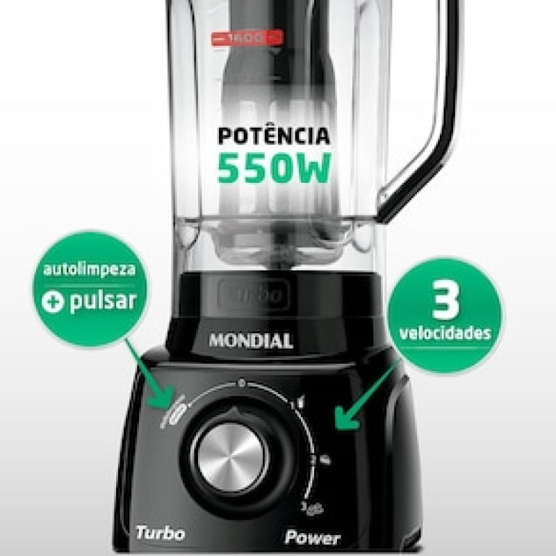 Liquidificador Mondial Turbo Power L-99 FB Preto 500W com 3 Velocidades REF: 161508_Sicredi