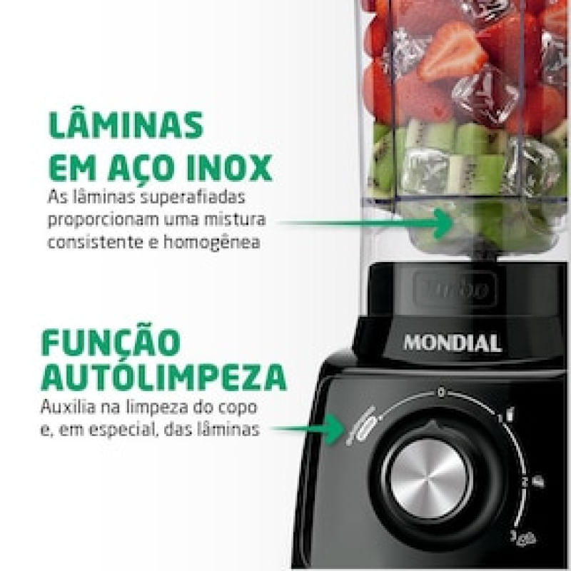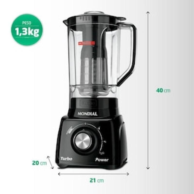 Liquidificador Mondial Turbo Power L-99 FB Preto 500W com 3 Velocidades REF: 155521_Sicredi