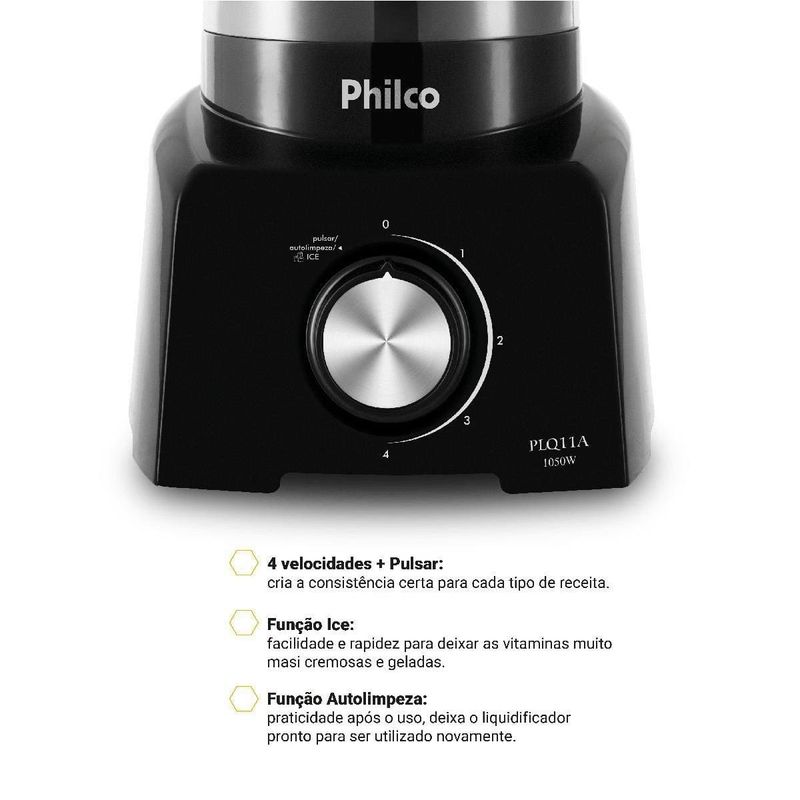 Liquidificador Philco PLQ11A 1050W 2,7L 4 Velocidades Função Tritura Gelo Preto REF: 7891356127861