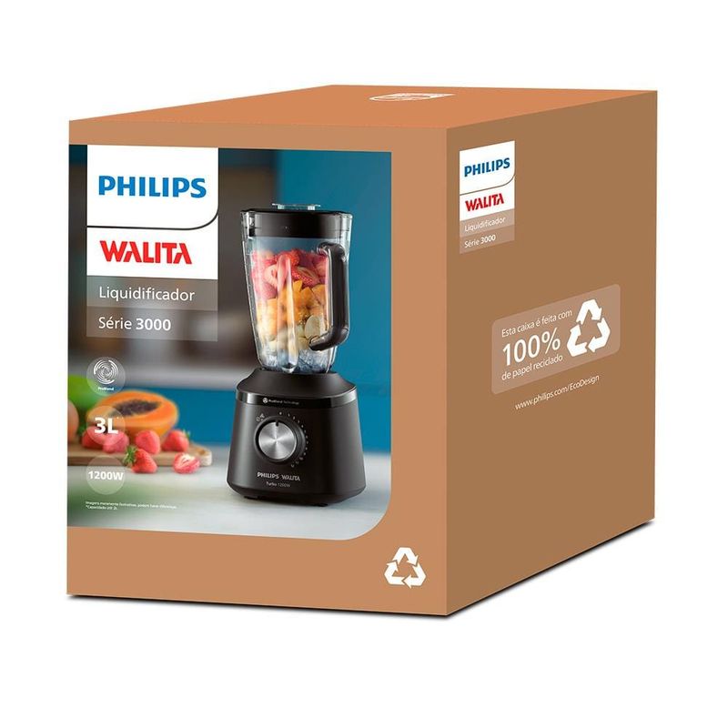 Liquidificador Philips Walita Série 3000 HR2271 1200W 3L 12 Velocidades Preto REF: 8720389031427