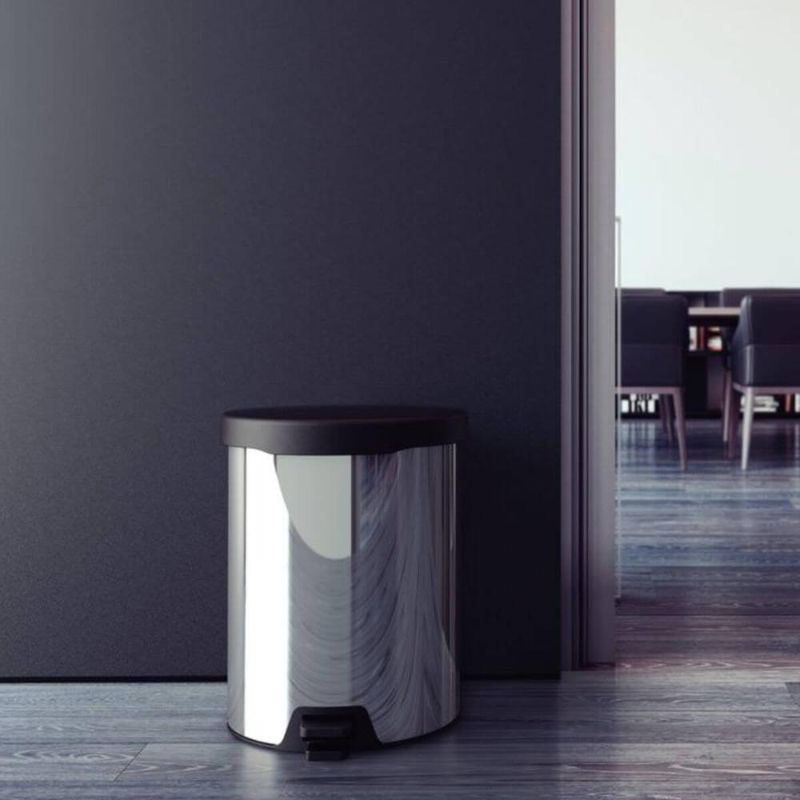 Lixeira com Pedal Tramontina New 12L Inox Polido Tampa Preta Escritório Cozinha Banheiro REF: 7894693776204