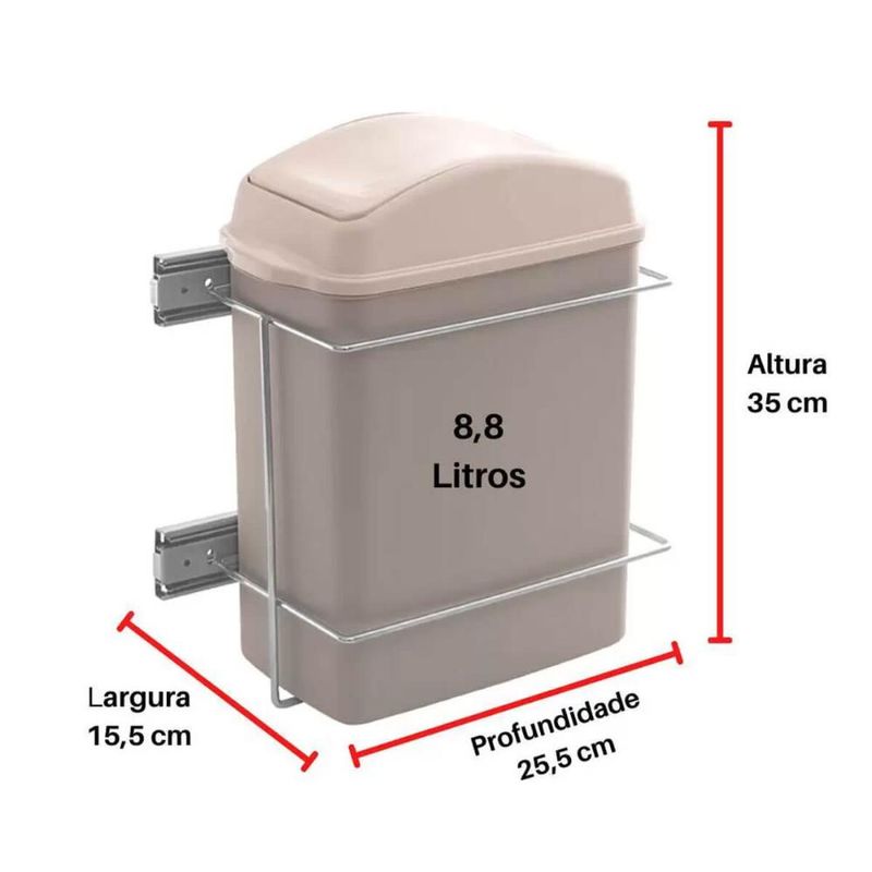 Lixeira de Cozinha Deslizante 8,8L de Embutir com Corrediça Lateral Giosul Cinza REF: 7898032680306