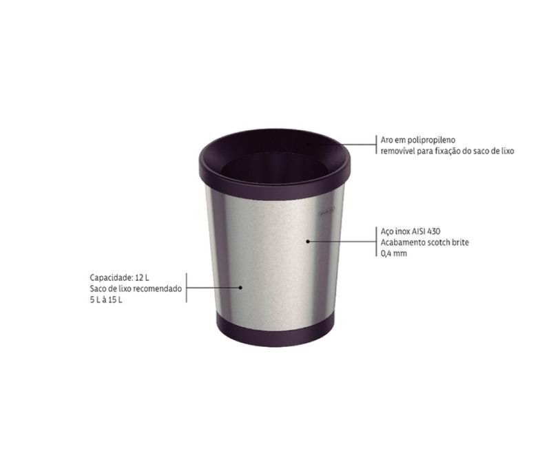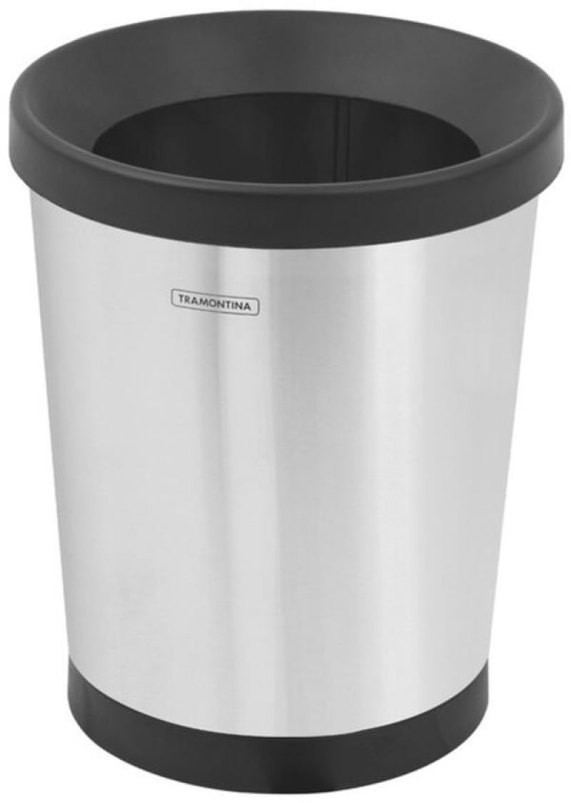 Lixeira Para Papel Tramontina Molise em Inox com Acabamento Acetinado, Base e Aro em Polipropileno 12 Litros REF: 7894693045089