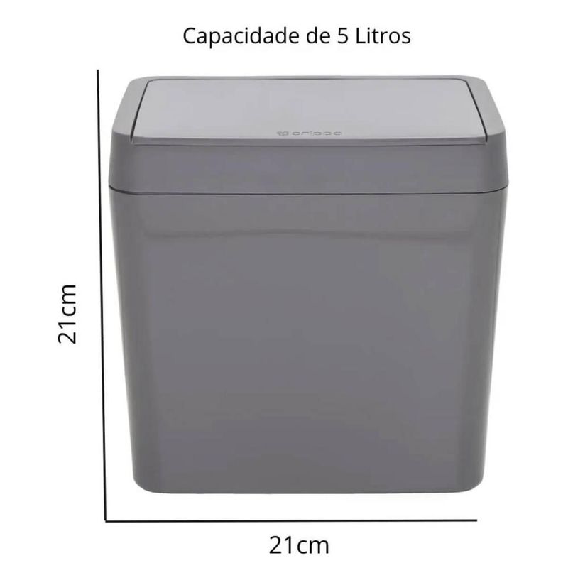 Lixeira Pequena 5L Crippa Cozinha Pia Escritório Retangular Cinza Tornado com Aro Interno REF: 7899868310948