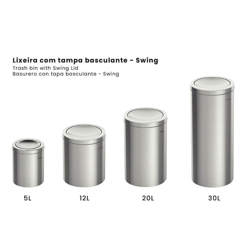 AgroFerramentas AgroLixeira Redonda 30L com Tampa Basculante Aço Inox Tramontina Swing Escritório Lavanderia