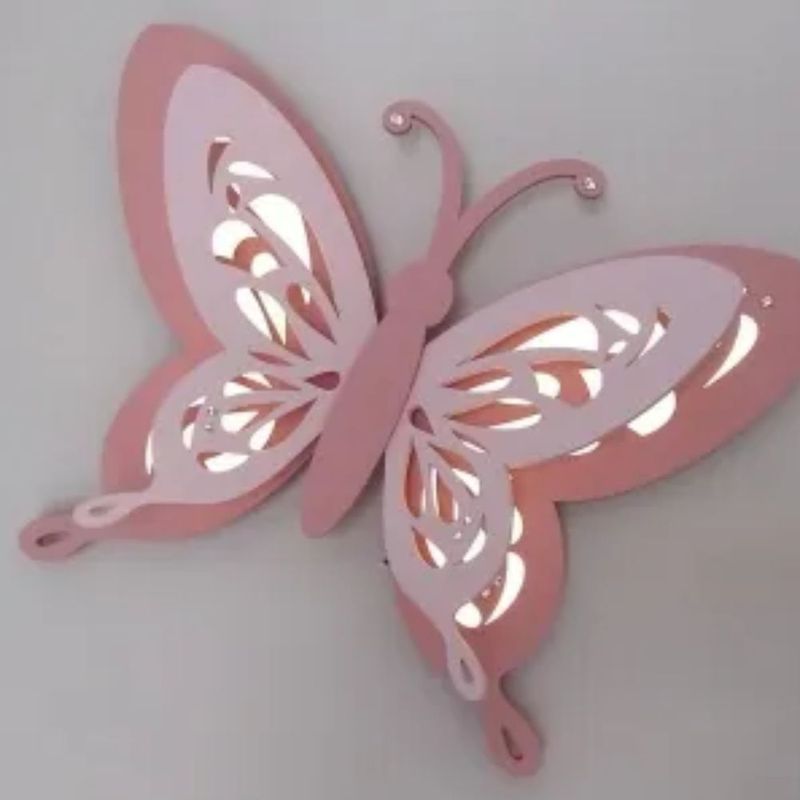 Casa e DecoraçãoDecoraçãoObjetos DecorativosLuminária de Parede Sem Fio Sapeca Borboleta 3D em Led 50x37 - BH Baby