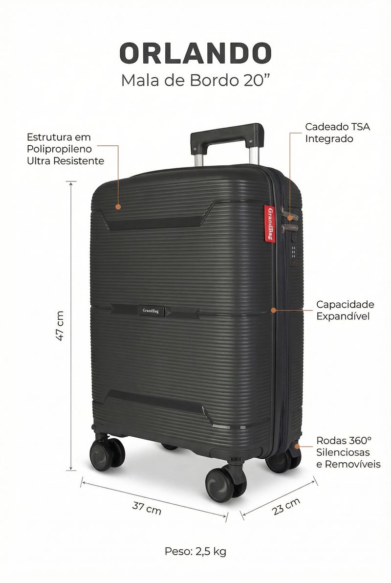 Mala de bordo viagem polipropileno 20" Orlando REF: 7908660172637