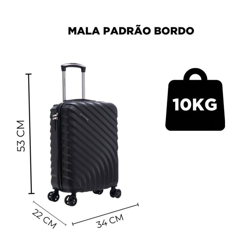 Mala de Viagem ABS Padrão de Bordo com Rodinhas e Alça Preta REF: 7898767551681