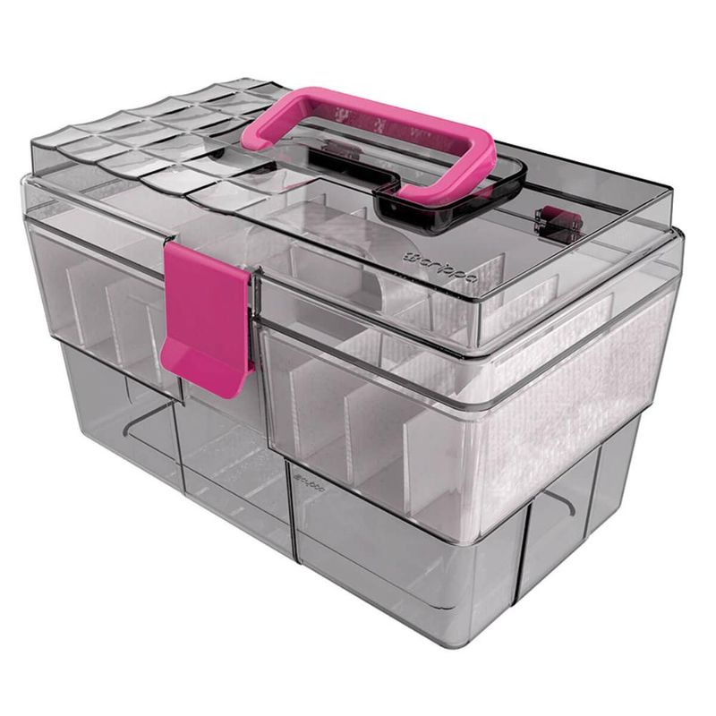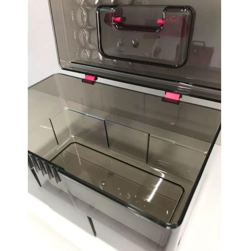 Maleta Organizadora Crippa Multiuso Maquiagem Medicamentos Itens Odontológicos Fumê e Rosa REF: 7899868303568
