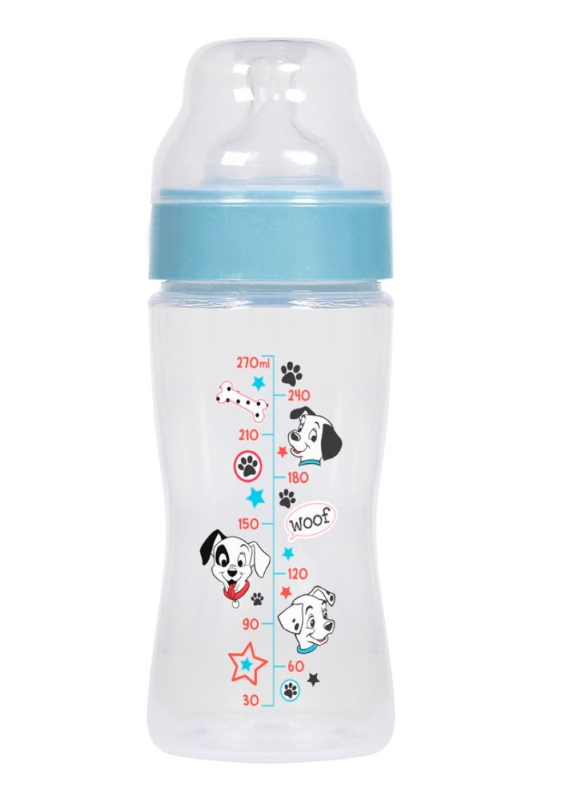 MAMADEIRA BABY GO SILICONE REDONDO DALMATAS WIDE NECK AZUL 270ML REF: 757906_Sicredi