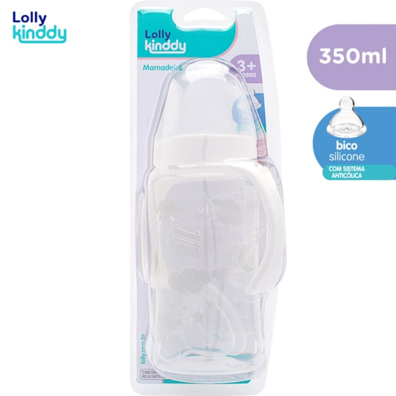 Beleza e SaúdeInfantil e GestanteInfantilMamadeira Lolly Big Dreams com Alça 350ml Silicone Orto Branca