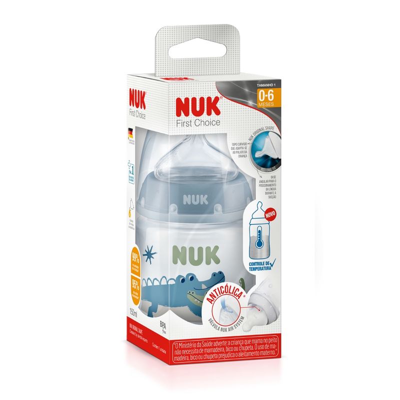 Beleza e SaúdeInfantil e GestanteInfantilMAMADEIRA NUK FASE 1 FC TEMPERATURE CONTROL 150ML BOY BICO SILICONE ANTICÓLICA TAMPA ANTIVAZAMENTO