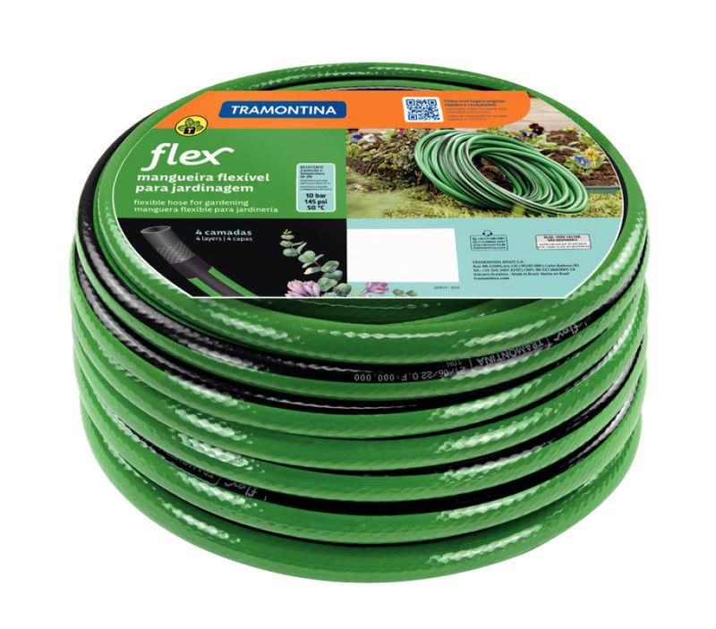 Ferramentas e ConstruçãoConstruçãoJardinagemMangueira Flex Para Jardim Tramontina em PVC Verde com Faixa Preta 4 Camadas 20m