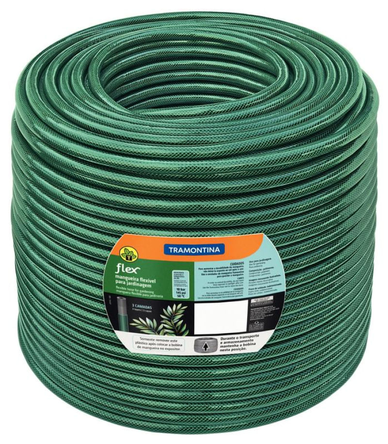 Ferramentas e ConstruçãoConstruçãoJardinagemMangueira Flex Tramontina em PVC Verde 3 Camadas 100m