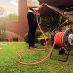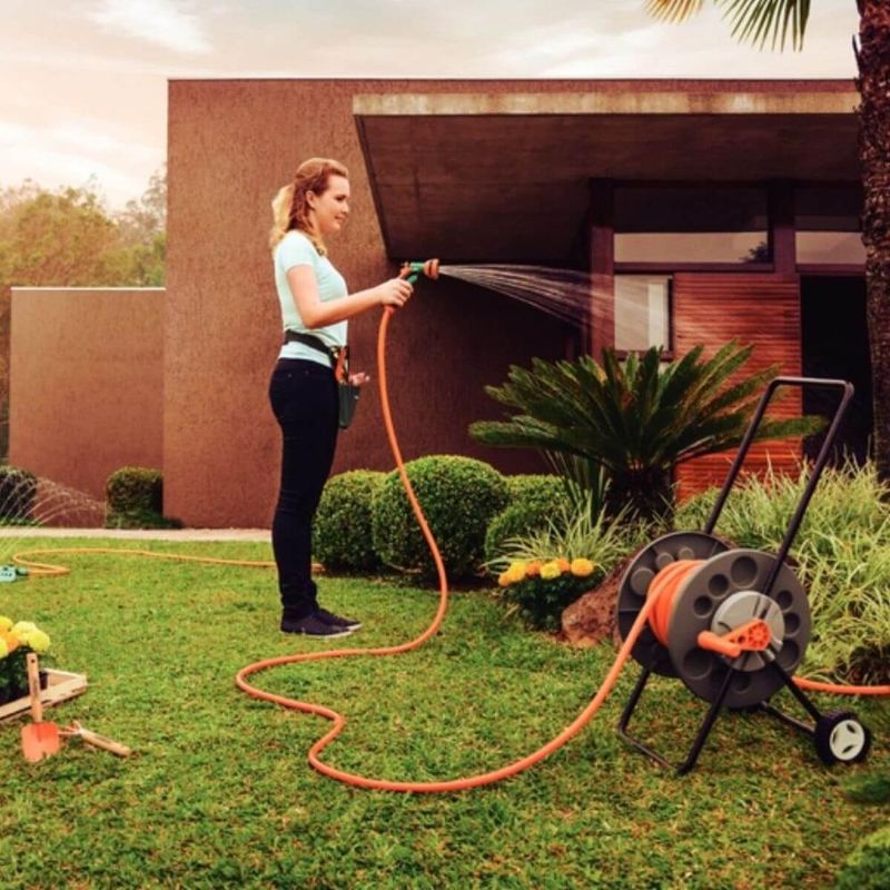 Mangueira Multi para Jardim Tramontina Flexível 100m PVC 3 Camadas Laranja Limpeza Jardinagem REF: 7891117097952