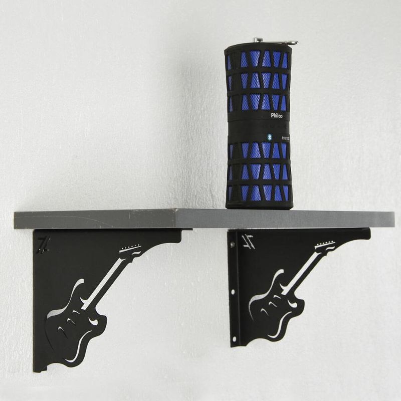 Casa e DecoraçãoMóveisNicho e prateleiraMão Francesa Prateleira Preta Decorativa 20cm Música Guitarra Aço Zarg