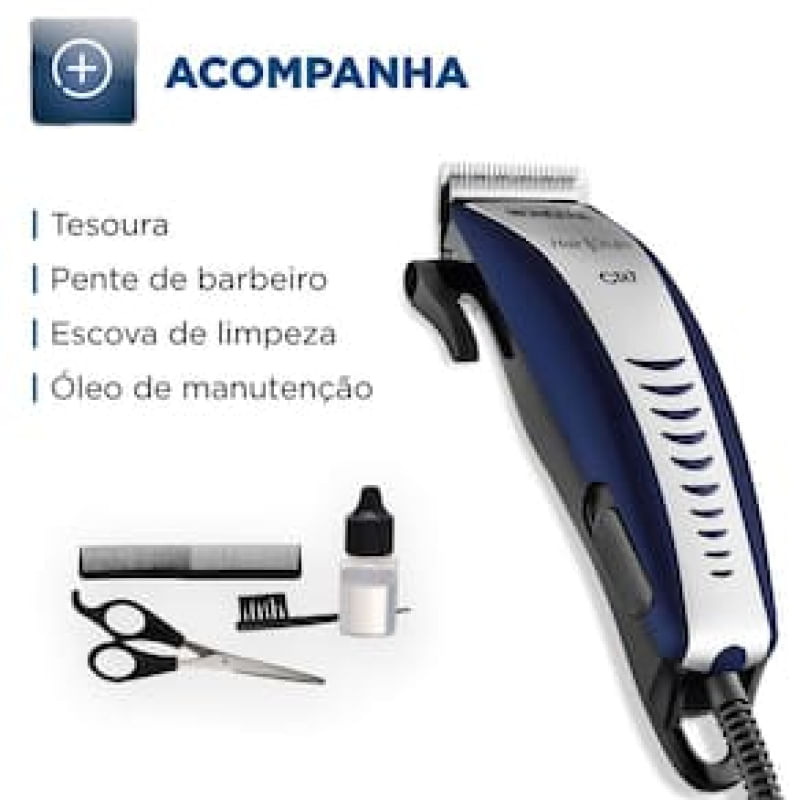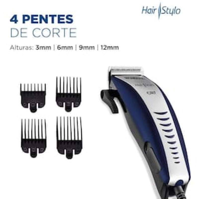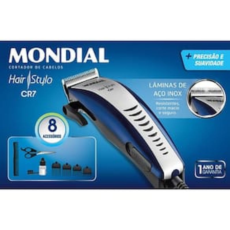 Máquina de Cortar Cabelo Mondial Hair Stylo CR-07 4 pentes - Azul/Prata REF: 270857_Sicredi
