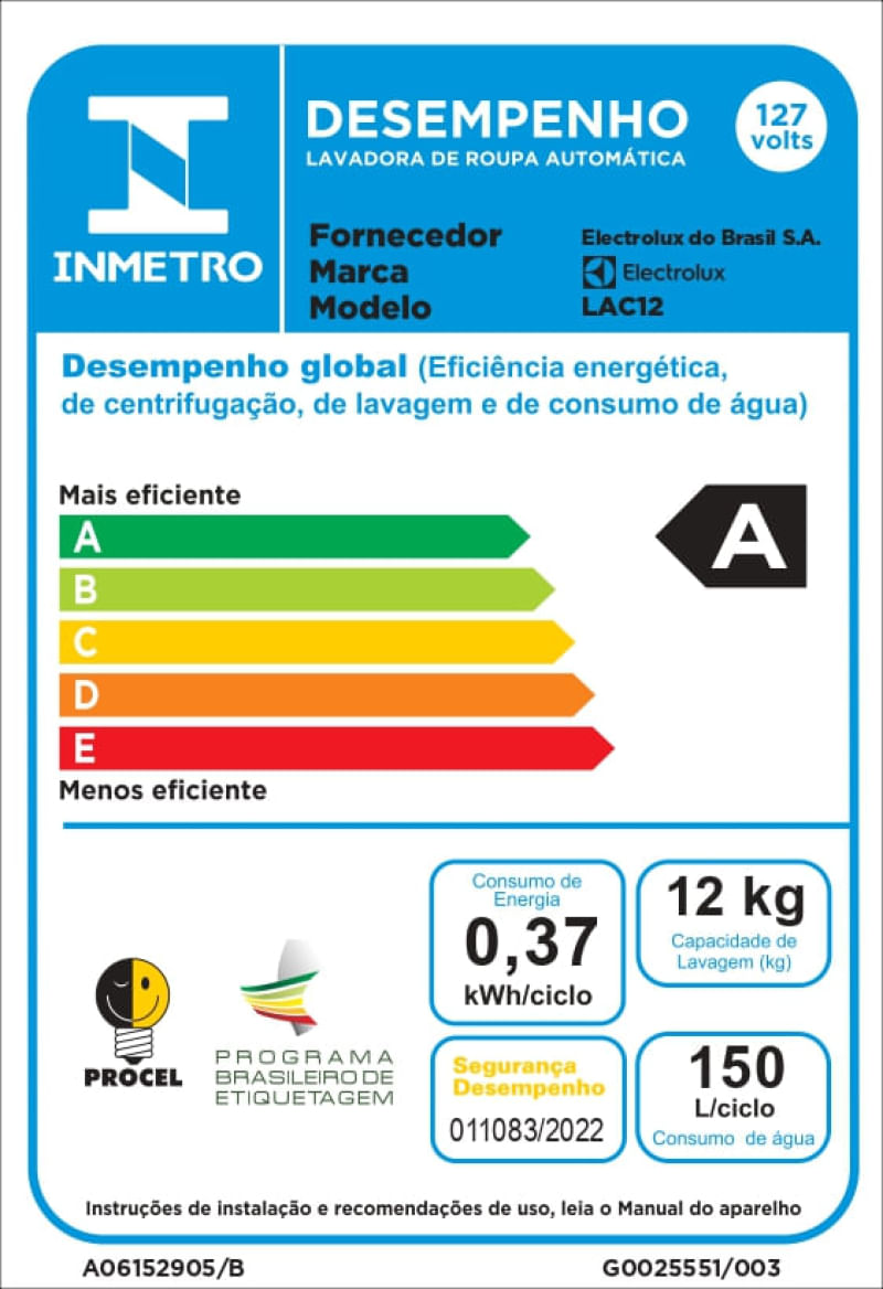 Máquina de Lavar Electrolux 12kg Branca Turbo Economia Silenciosa com Cesto Inox (LAC12) REF: 659015_Sicredi