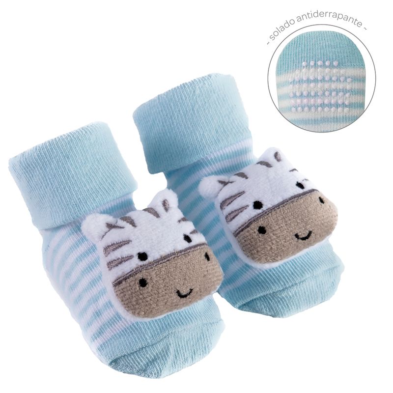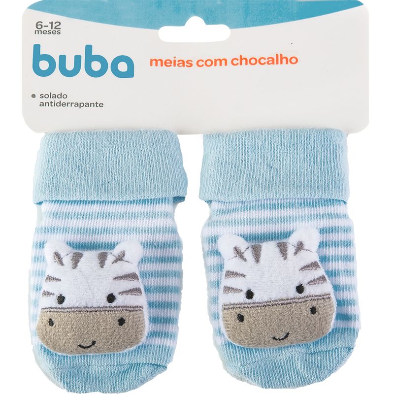 Meias BUBA Antiderrapantes com Chocalho - Zebrinha Azul REF: 7908103727325