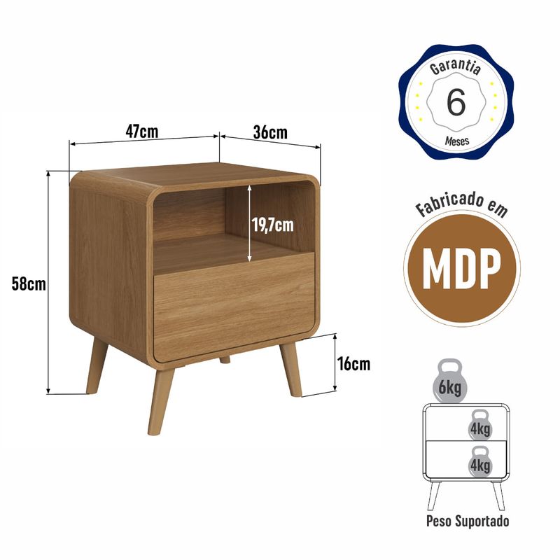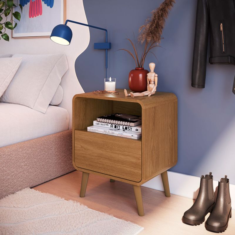 Casa e DecoraçãoMóveisMesaMesa de Cabeceira 1 Gaveta Curve Carvalho Xingu 47x36x58cm Completa Móveis