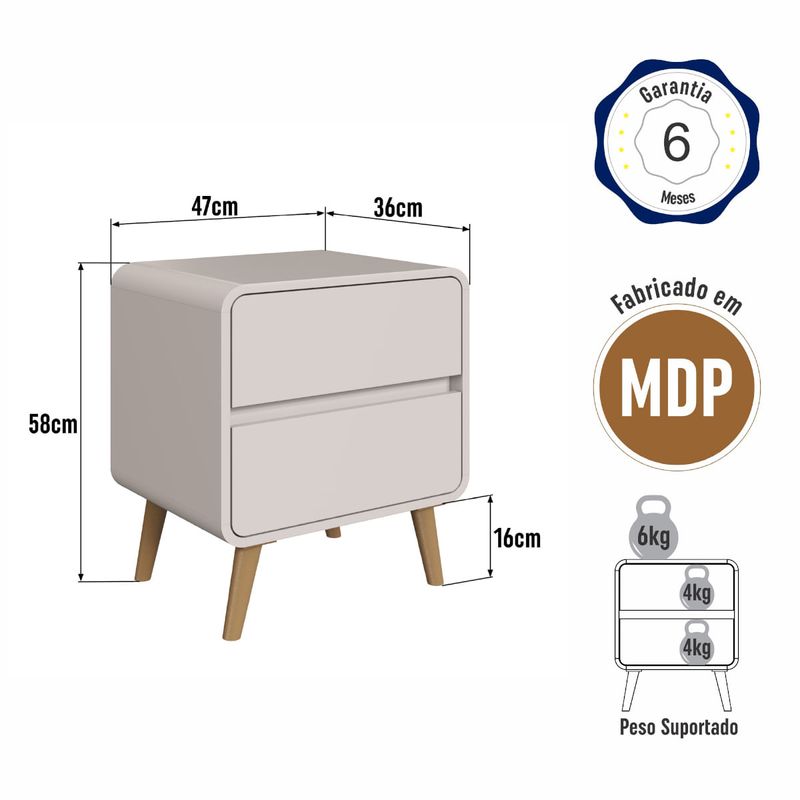 Mesa de Cabeceira 2 Gavetas Curve Bege 47x36x58cm Completa Móveis REF: 7899671471874