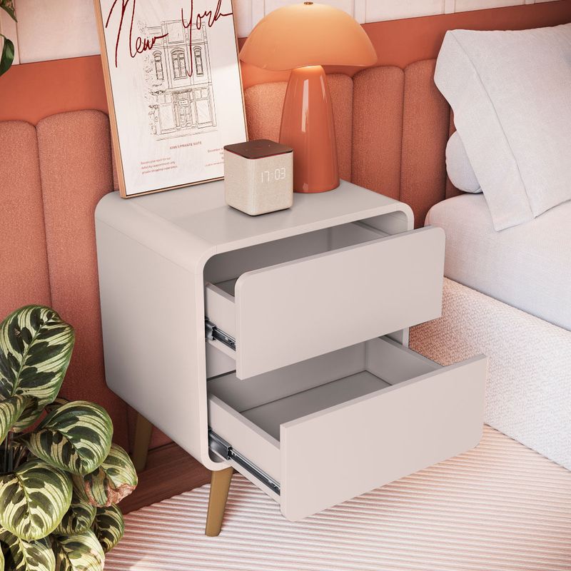 Casa e DecoraçãoMóveisMesaMesa de Cabeceira 2 Gavetas Curve Bege 47x36x58cm Completa Móveis