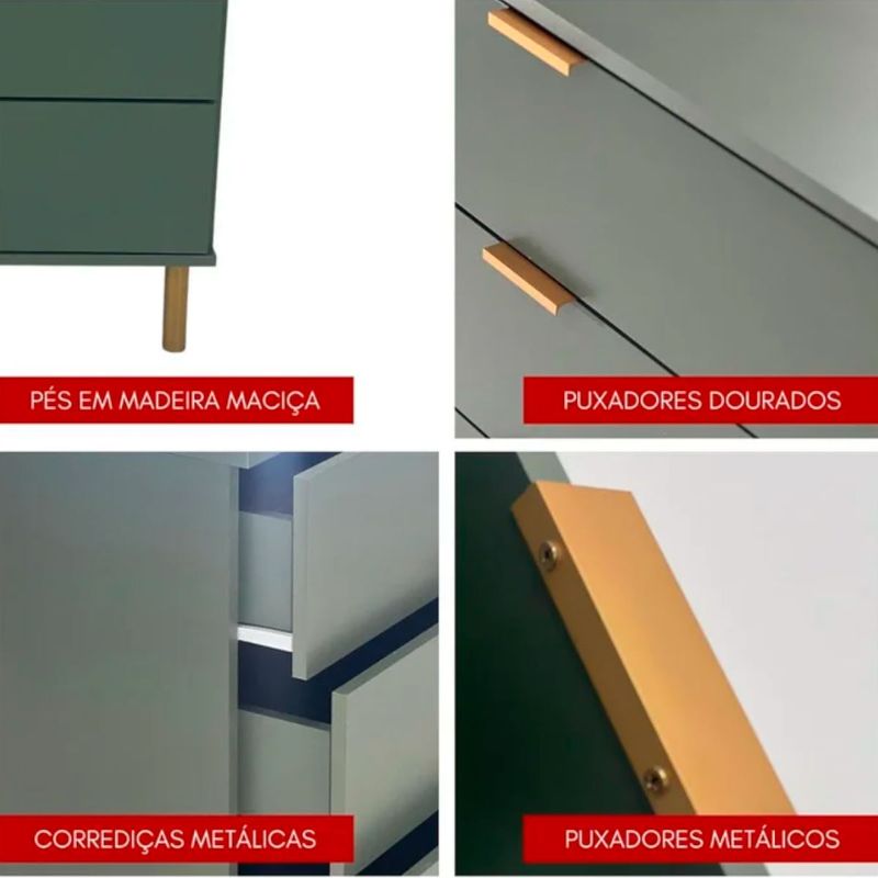 Mesa de Cabeceira 2 Gavetas Verde Oliva 41x39x56 cm Ditália REF: 7893948487421