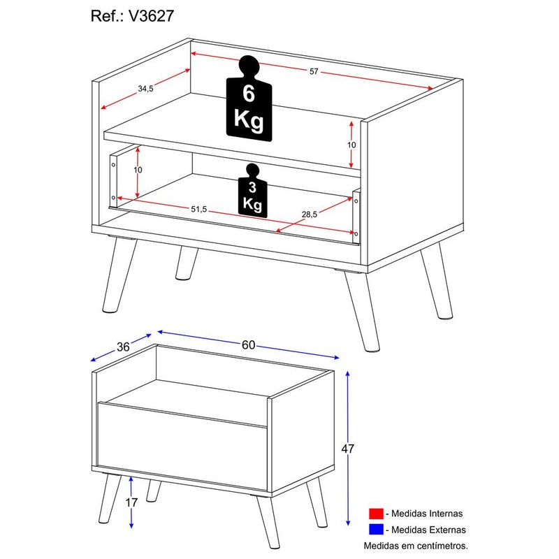 Casa e DecoraçãoMóveisCabeceiraMesa de Cabeceira 60cm Retrô Multimóveis V3627