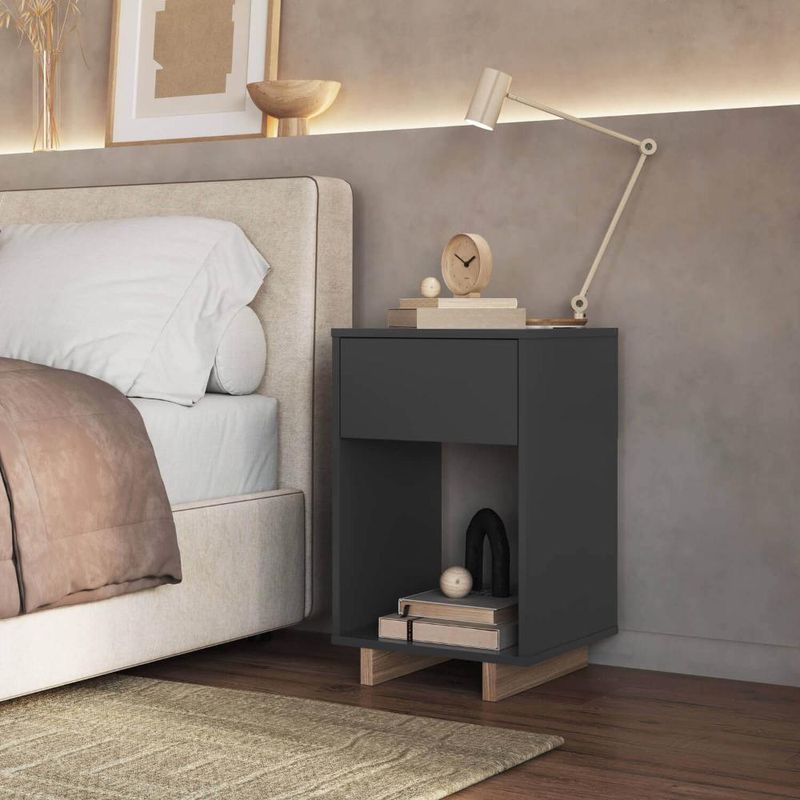 Casa e DecoraçãoMóveisCabeceiraMesa de cabeceira e lateral com 1 gaveta Nomad Nova Móbile Grafite Montana