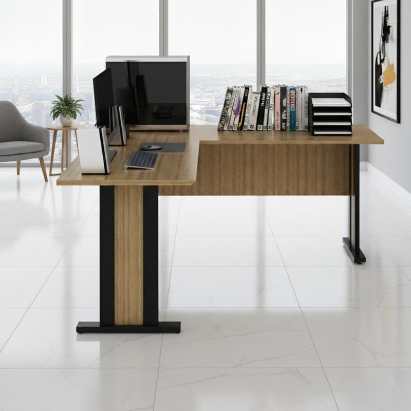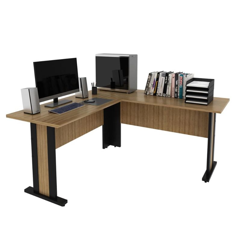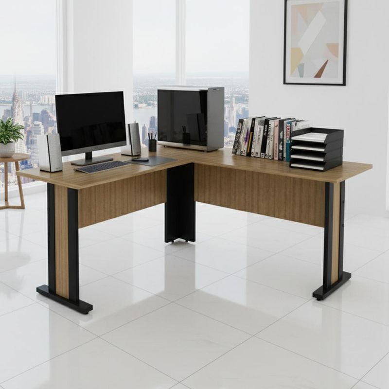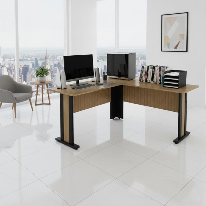 Casa e DecoraçãoMóveisMesaMesa de Canto Escritório 160x160cm Tampo 25mm ME4195 Amêndoa/Preto