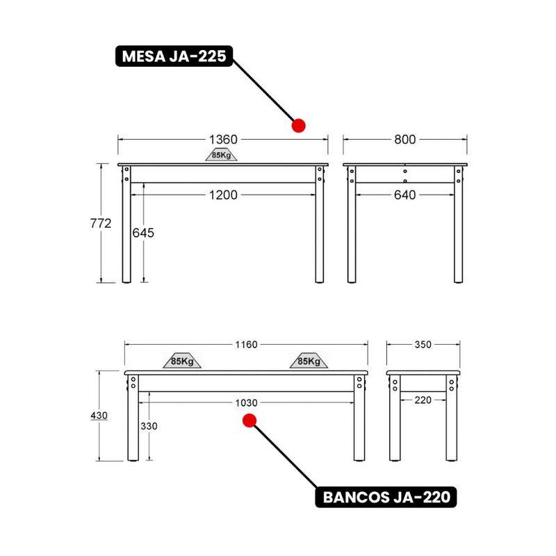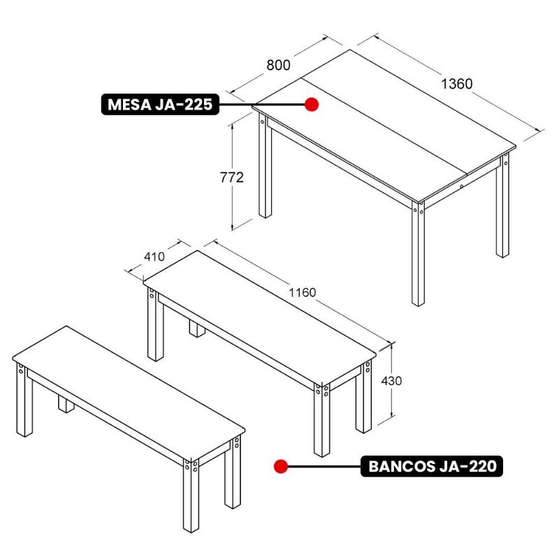 Mesa de Jantar Ditália 2Bancos JA-220+JA-225 REF: 265550_Sicredi