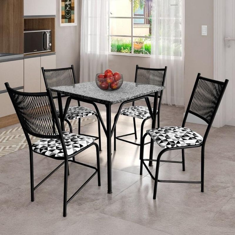 Casa e DecoraçãoMóveisMesaMesa de Jantar Quadrada Famais Noruega com 4 Cadeiras Preta