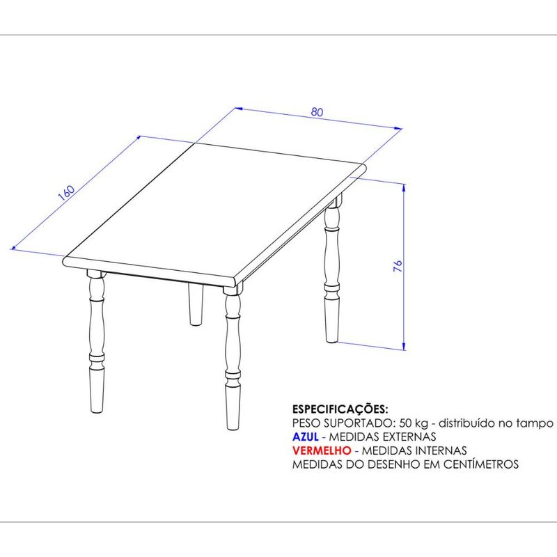 Casa e DecoraçãoMóveisMesaMesa de Jantar Retangular 6 Lugares 160cm Multimóveis CR50111
