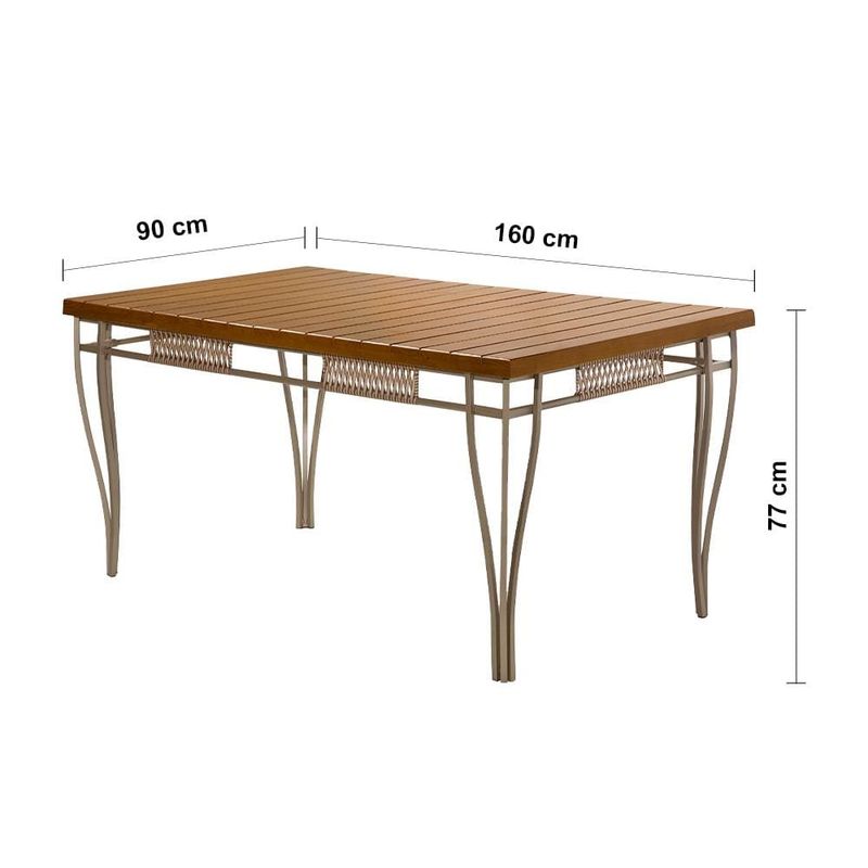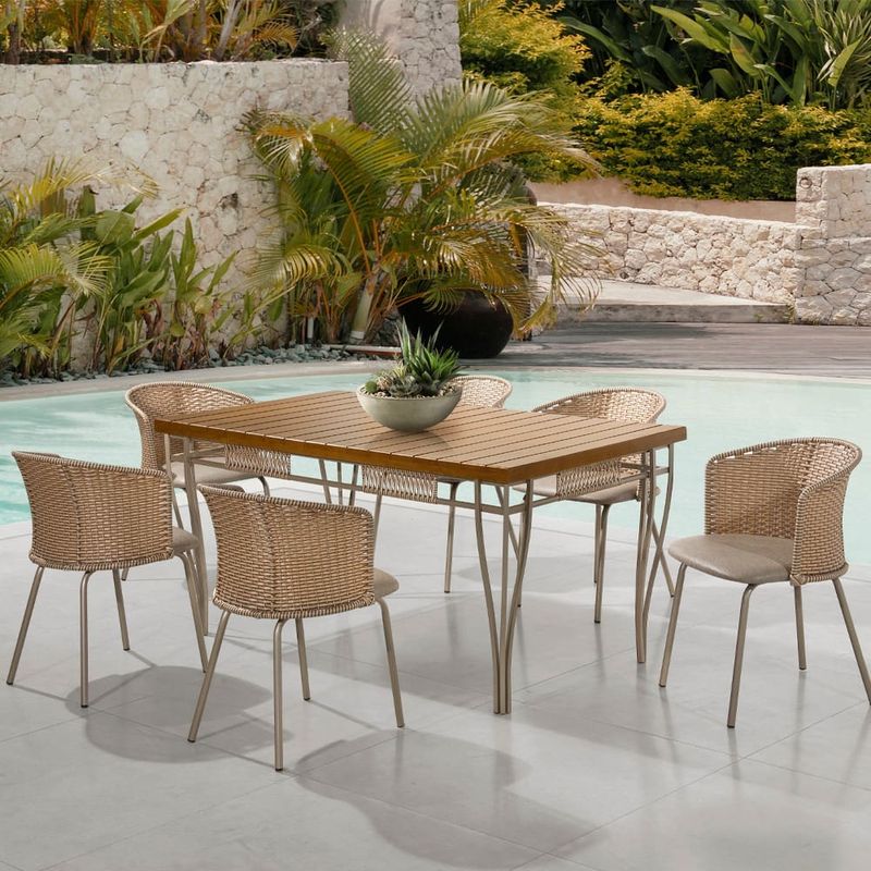 Mesa de Jantar Retangular Aço Nobre Roma com Tampo Ripado e 6 Cadeiras Estofadas Revestidas em Junco Sintético - Champanhe REF: 461580_Sicredi