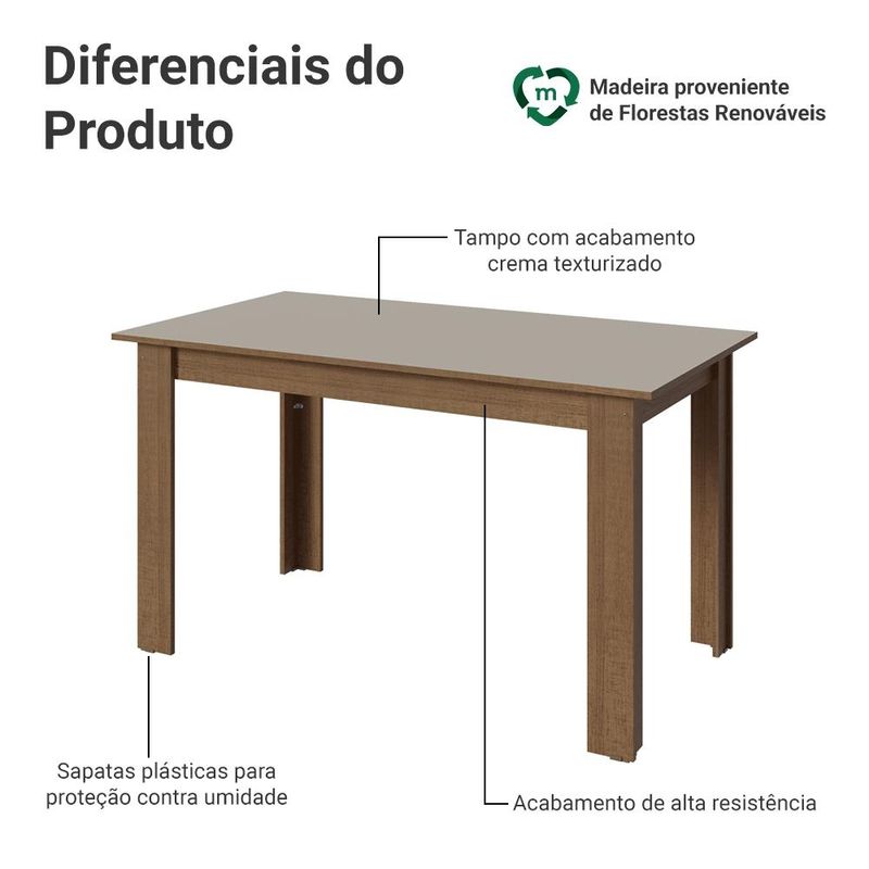 Casa e DecoraçãoMóveisMesaMesa de Jantar Retangular Tampo de Madeira Rustic/Crema 5231 Madesa