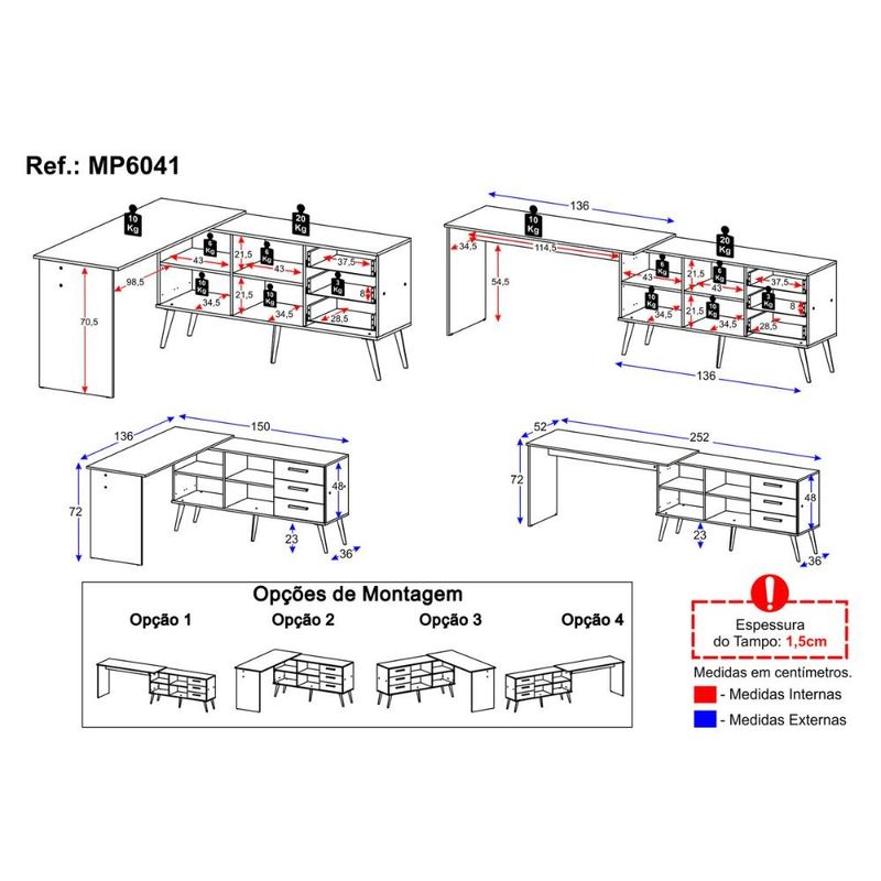 Casa e DecoraçãoMóveisMesaMesa de Manicure Profissional em L com 3 Gavetas Jady Multimóveis MP6041