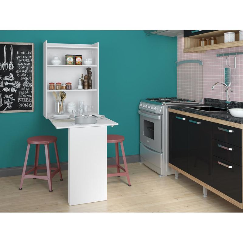 Mesa Dobrável Multimóveis Multiuso com Armário de Parede Branco REF.5131 REF: 571814_Sicredi