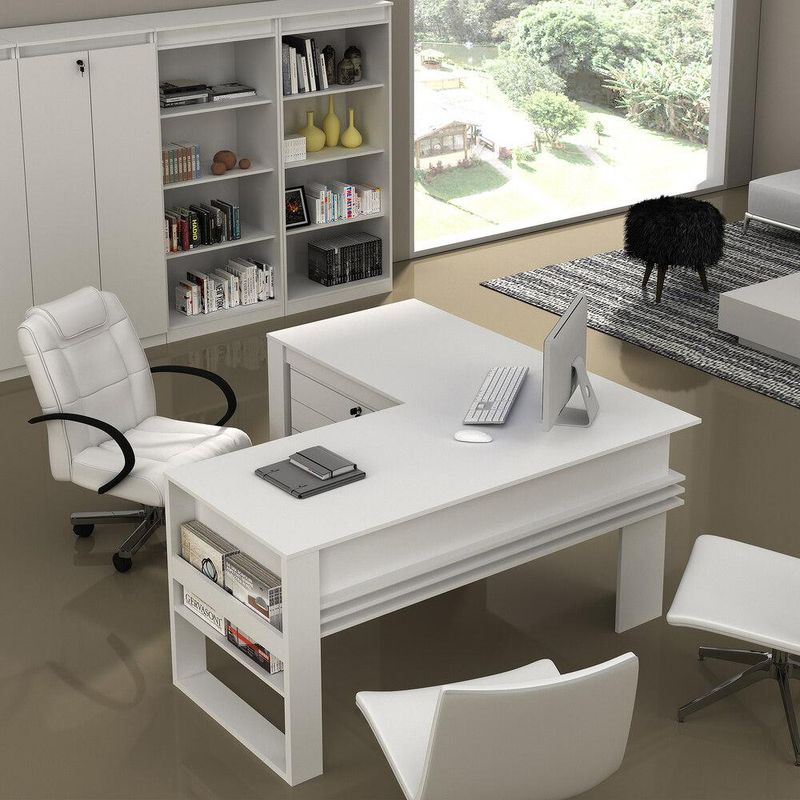 Casa e DecoraçãoMóveisEscrivaninhaMesa Escritório de Canto Multimóveis CR25042 Branca