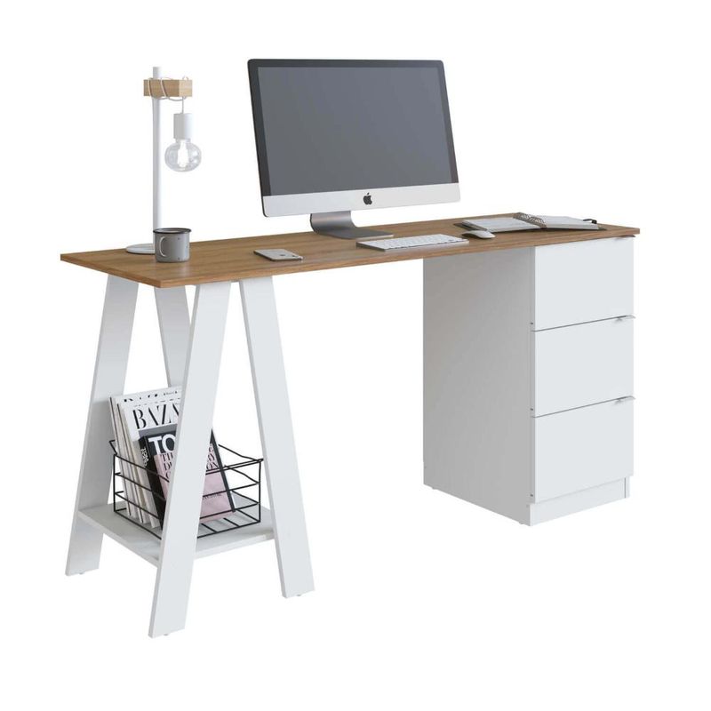 Casa e DecoraçãoMóveisMesaMesa Escrivaninha Cavalete com Gavetas Nova Móbile Mel Branco