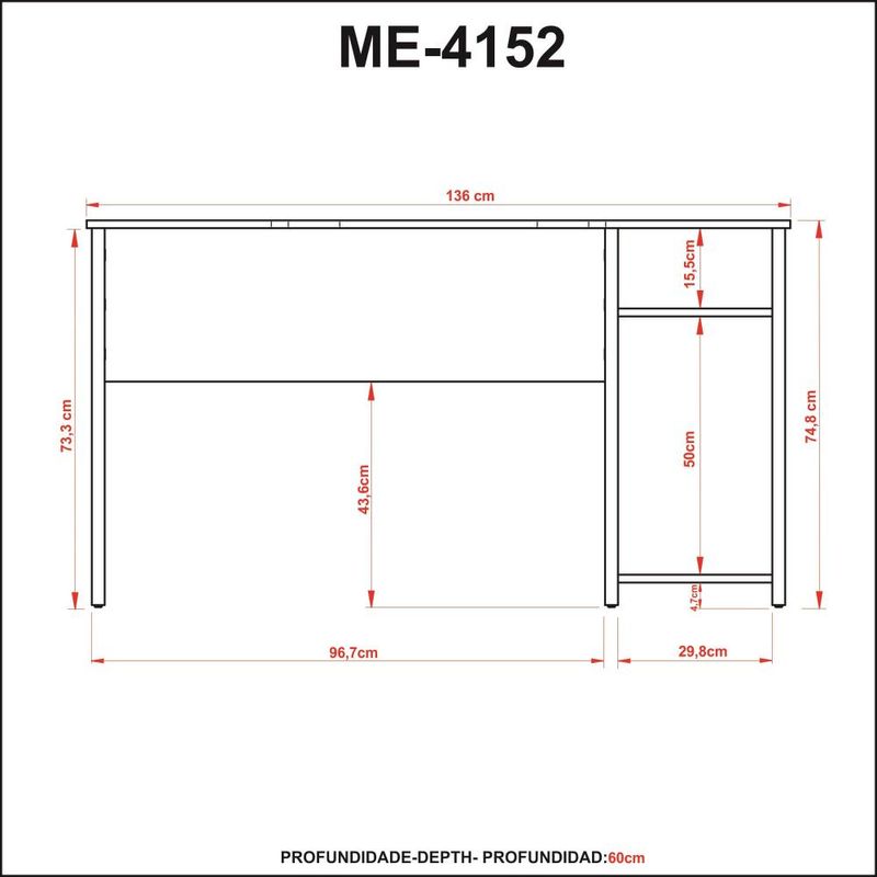 Mesa Gamer 136cm com 2 Prateleiras e Porta CPU ME4152 Preto/Vermelho Tecnomobili REF: 7908212511044