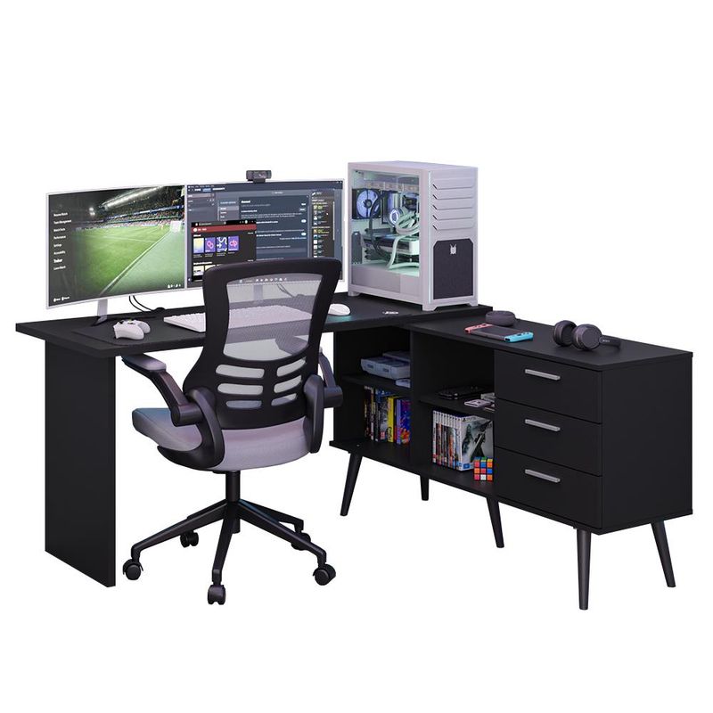 Casa e DecoraçãoMóveisMesaMesa para Computador Gamer em L 3 Gavetas Preto Lisboa Madesa
