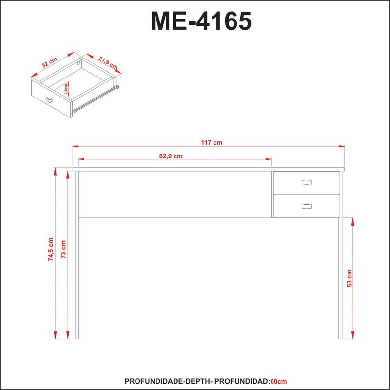 Mesa para Escritório 117cm com 2 Gavetas ME4165 Nogal/Preto Tecnomobili REF: 7908212517374